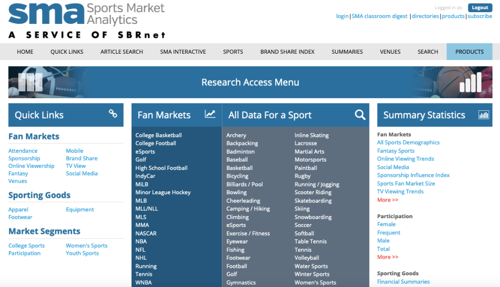 Coinciding with the exciting news that Major League Baseball will be returning in July, I would like to provide a brief overview of Sports Market Analytics, a unique resource for sports fans and researchers interested in the business and economic impact of sports. Law school patrons can access this database by entering their Northwestern Net ID and password or by using GlobalProtect VPN.