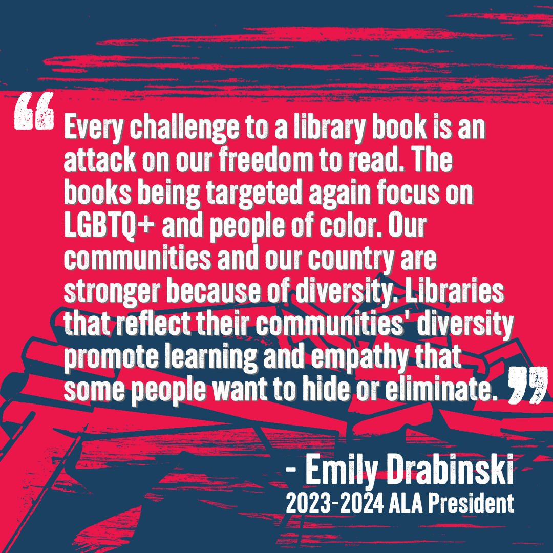 The number of book challenges has increased over ten times since 2004 – including a 65% increase of challenges in 2023 from 2022. You can see the list of the top 10 challenged books and investigate the top 10 challenged books beginning in 2001 on the ALA’s website. Of the top ten challenged books this year, seven were challenged for LGBTQIA+ content.